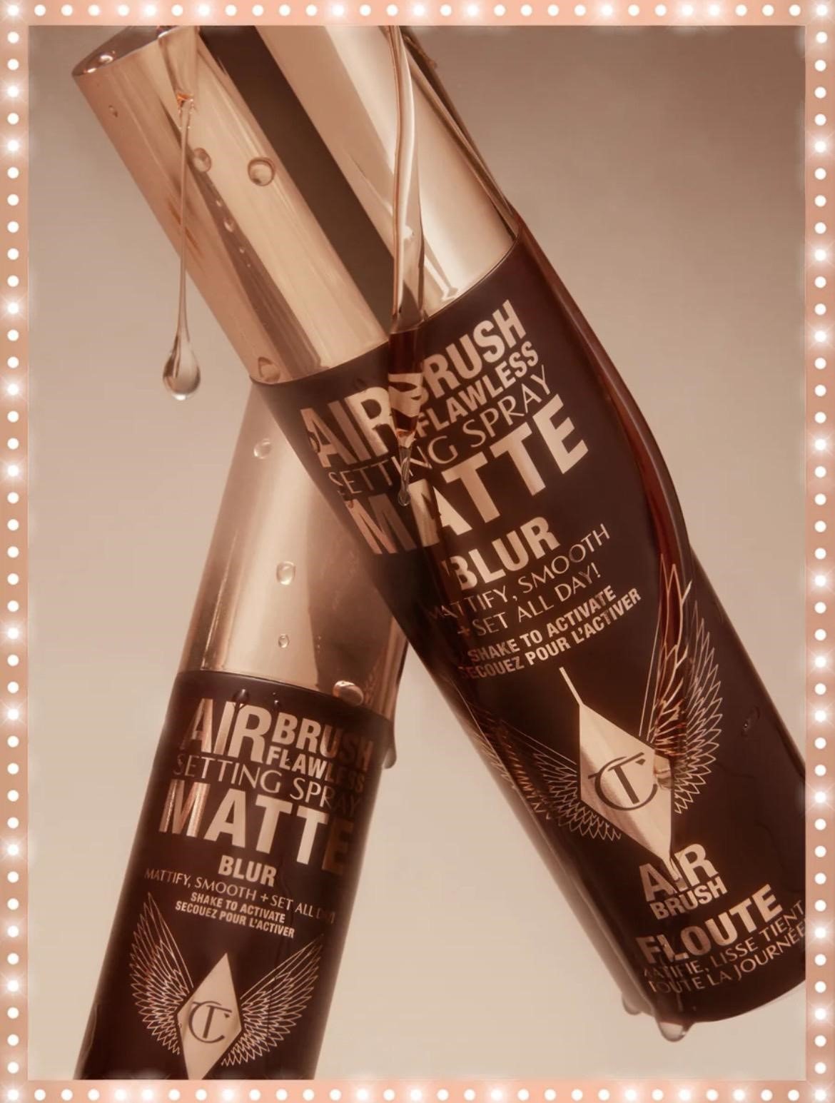 Charlotte Tilbury全新Airbrush Flawless Matte Setting Spray,24小時控油控亮霧面定妝噴霧,輕盈如空氣防水配方,16小時鎖妝不溶妝不脫妝,柔焦毛孔絲絨啞光妝效,油肌救星,融合蘆薈日本綠茶保濕舒緩,PoreAway™技術保持毛孔暢通。